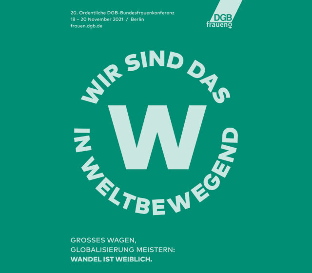 Deswegen stellt die 20. Bundesfrauenkonferenz des Deutschen Gewerkschaftsbundes den Wandel der Arbeitswelt mit seinen gesellschaftlichen und sozialen Folgen in den Mittelpunkt ihrer inhaltlichen Debatten. Wir wollen auf allen Handlungsfeldern die Geschlechterperspektive aufzeigen und den Wandel konsequent für die Umsetzung der tatsächlichen Gleichstellung von Frauen und Männern nutzen.