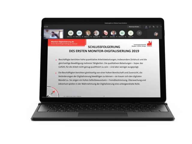 Nach der Begrüßung durch Marion Hackenthal, Leiterin der Abteilung Frauen/Gleichstellung, fasste Karin Erhard in ihrem Vortrag die Aktivitäten der vergangenen Monate zusammen. Vorstandssekretärin Anna Engfer referierte zu „Frauen im Ehrenamt“ und Sebastian Grzegorek (Abteilung Arbeits- und Betriebspolitik) stellte den neuen Monitor Digitalisierung vor (siehe auch Thema 9 dieser Ausgabe). Schwerpunkt der Konferenz bildeten die Betriebsratswahlen 2022 und erfolgreiche Strategien ausgewählter Bezirke zur Mitgliedergewinnung und -aktivierung.