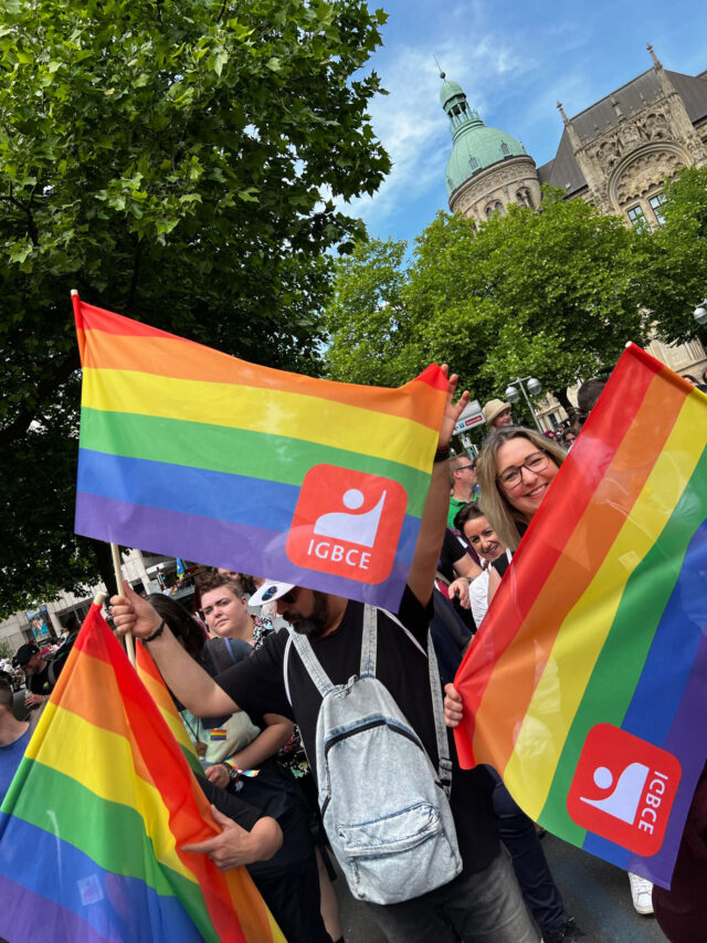 Gegen Diskriminierung im Arbeitsleben setzten Anfang Juni zahlreiche IGBCE-Mitglieder ein Zeichen beim Christopher Street Day in Hannover. Zwei Kolleginnen der Abteilung Frauen/Diversity sprachen auf der Bühne zum Publikum. „Wir wollen, dass alle Menschen dieselben Chancen haben – unabhängig von Geschlecht oder sexueller Orientierung – und dafür stehen wir ein“, sagte Stefanie Taxweiler, IGBCE-Gewerkschaftssekretärin. Insgesamt zeigten gut 11.500 Teilnehmer*innen Flagge für mehr Vielfalt in der Gesellschaft und zogen gemeinsam durch die Innenstadt.